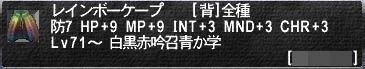 レインボーケープ[背]防7 HP+9 MP+9 INT+3 MND+3 CHR+3